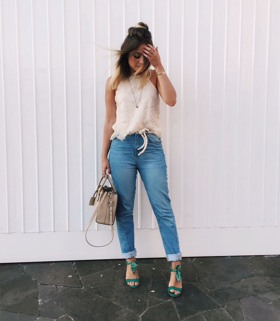 usei um jeans meio vintage que encontrei lá na @lojasrenner e dobrei um pouco a barra, coloquei uma blusa de paetê, porque SIM! podemos usar brilho durante o dia e, misturar com o jeans eu acho que fica lindo! nos pés, usei minha #lola verde by @vicenza_ dando um toque de cor ao look. e no meu cabelo eu fiz um coquinho, podrinho para dar um ar de estilo!! meu cinto é uma corda e minha bolsa é @schutzoficial